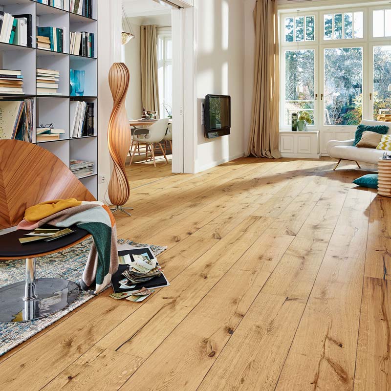 De nieuwe technologie kan daardoor heel passende vintage vloeren creëeren die over de jaren heen bovendien nog versterkt worden met een aantrekkelijke patina. Het resultaat zijn levendige gebarsten en natuurgeoliede landhuisplanken in een used-look. Deze nieuwe dimensie van houten vloeren is enorm robuust en uiterst impact-resistent.